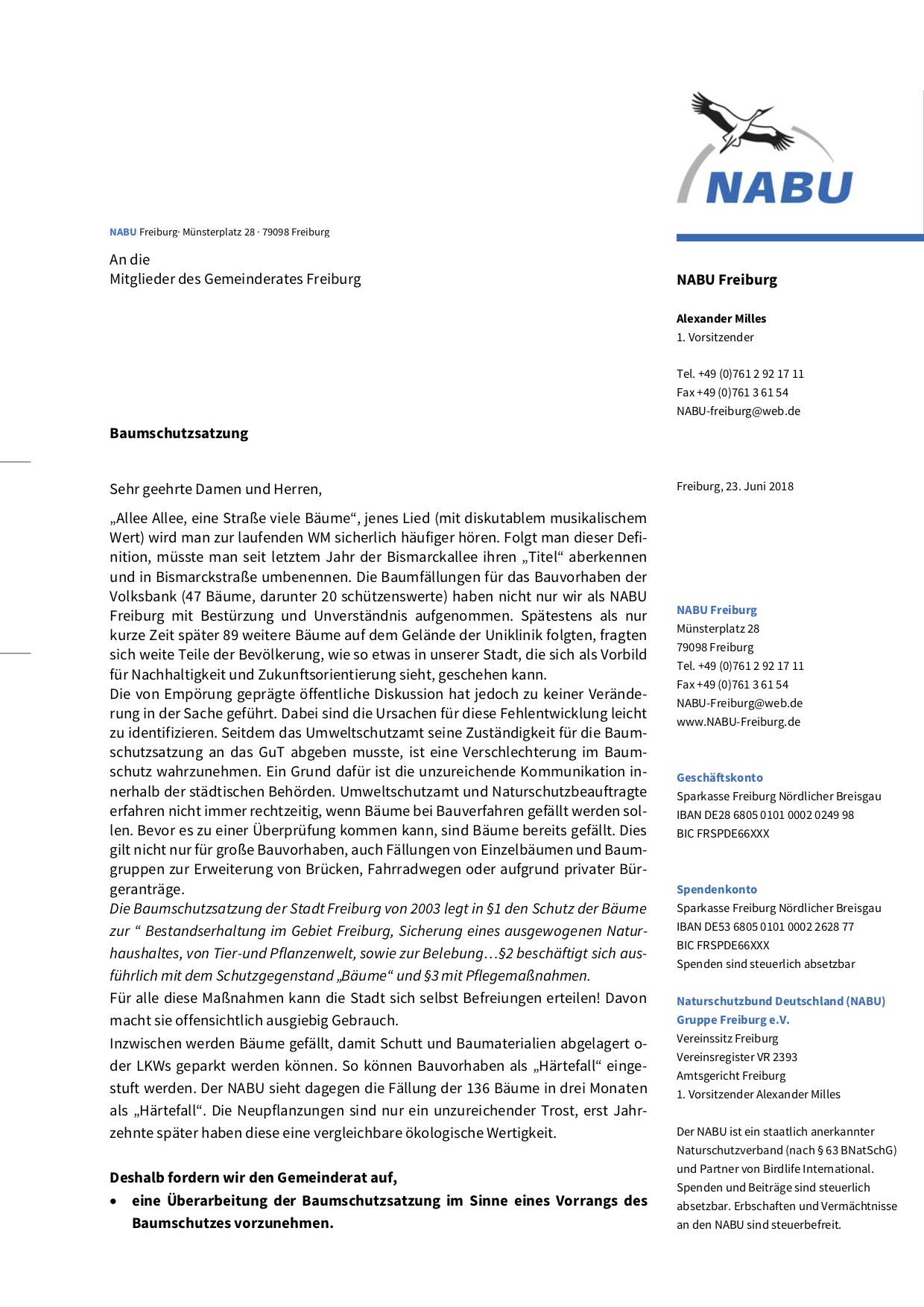 Stellungnahme zum Entwurf des Bebauungsplan mit örtlichen Bauvorschriften Höhe, Plan-Nr. 2-100 (Zähringen)