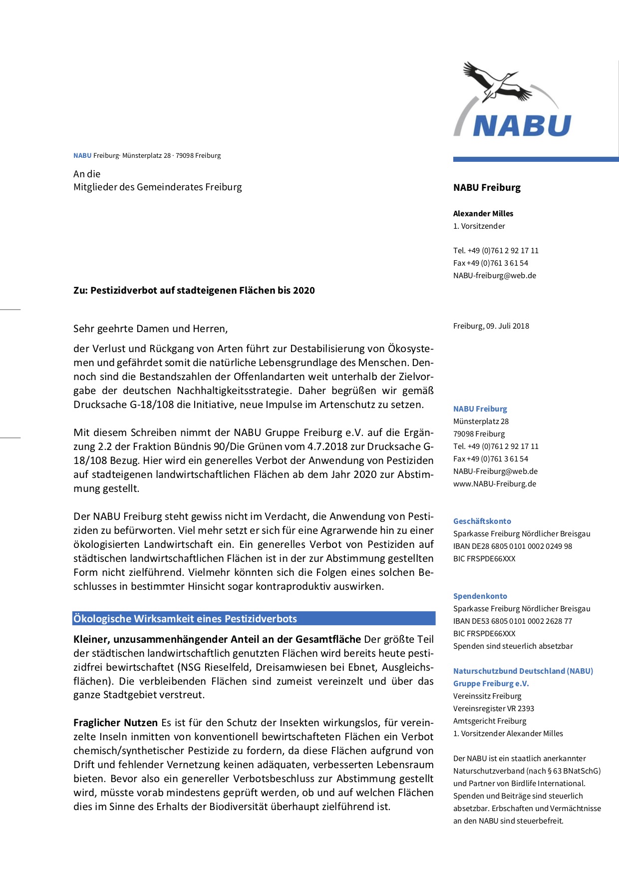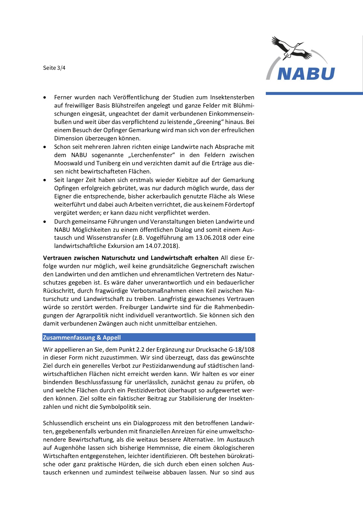 Stellungnahme zum Entwurf des Bebauungsplan mit örtlichen Bauvorschriften Höhe, Plan-Nr. 2-100 (Zähringen)