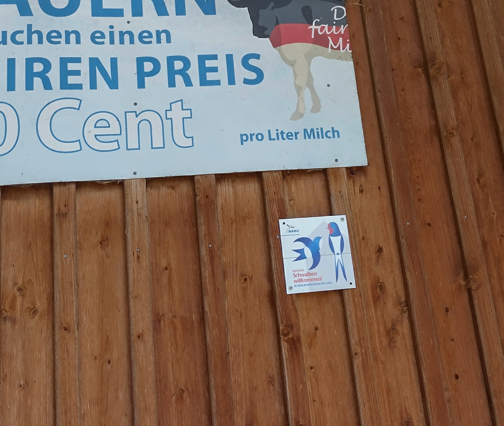 Wir freuen uns darüber, dass sich hier die Landwirtschaft und die Schwalben gegenseitig helfen, und zeichnen gerne den Ignazhof mit der Schwalbenplakette aus.